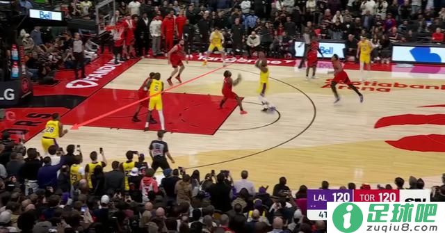 但詹姆斯毫不犹疑选择了另外一条路,他分球底角处于空位的八村塁,自动坚持了延续纪录的时机,做出了球场上最合理的选择,正如他23个赛季以来一直在做的那样。