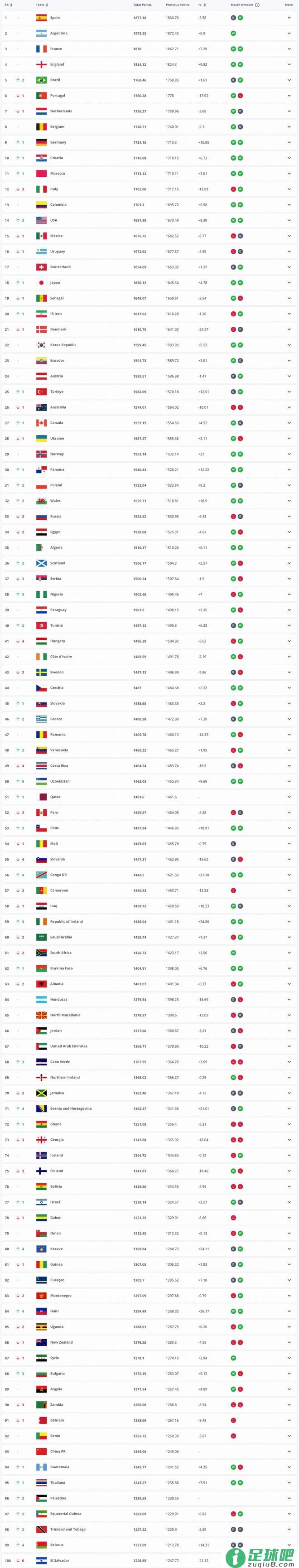 FIFA最新世界排名:西阿法英巴葡荷比德锁定世界杯种子队中国仍居第93相关内容