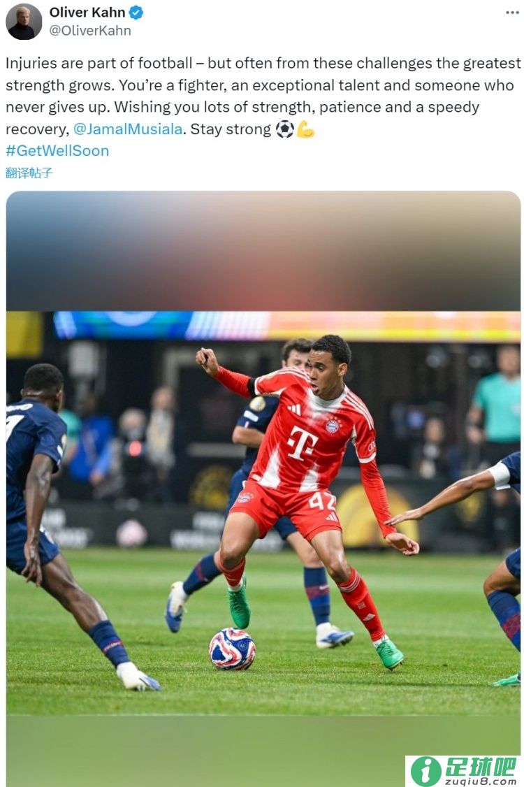 卡恩社媒鼓舞穆西亚拉:应战会孕育最弱小的力气,祝你早日康复相关内容