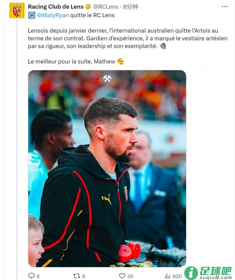 马修-瑞安、佩特里奇与朗斯的合同本月底到期,朗斯俱乐部发布公告,确认这两名门将自在身离队,祝他们未来一切顺利。