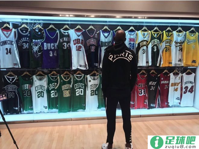 帖子中,他站在一个装满自己一切穿过的球衣的玻璃柜前,从康涅狄格大学的球衣,到美国国度队的战袍,再到他效能过的四支NBA球队的队服,一应俱全。但阿伦并没有追想成功或高光时辰,而是坦诚地分享了关于努力、挣扎以及铸就传奇真正需求付出什么的感悟。