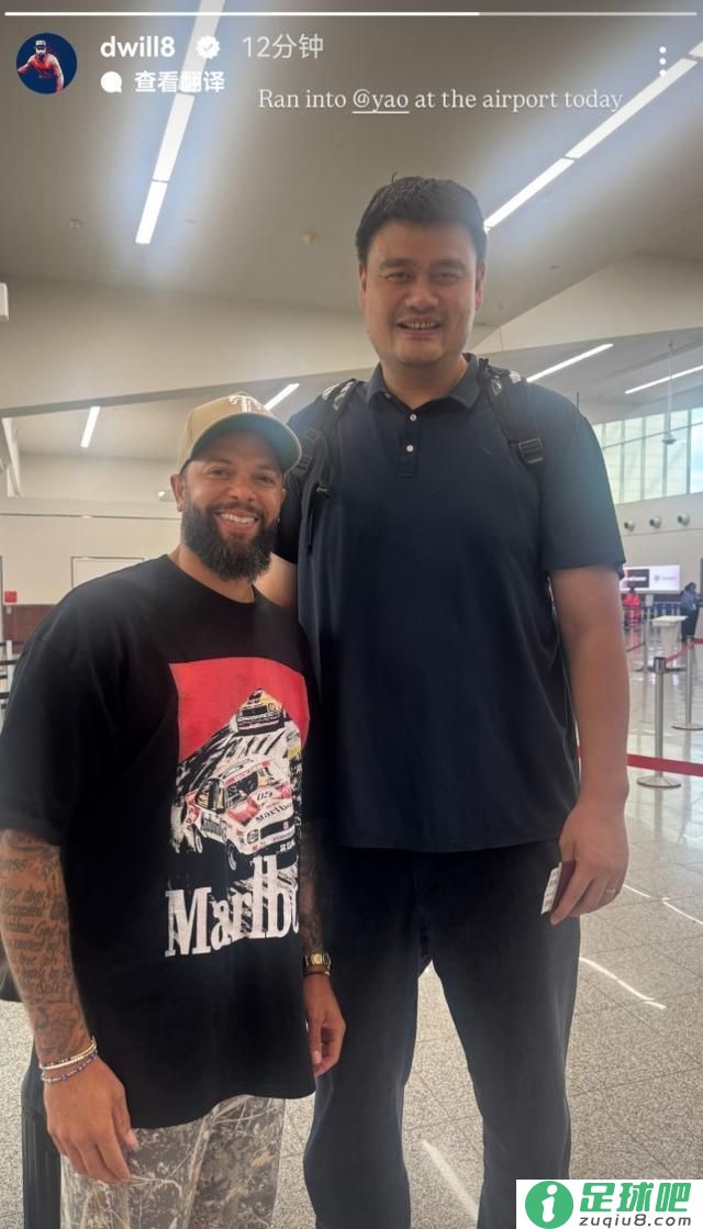 火箭球迷心中的痛!德隆威廉姆斯偶遇姚明两人一同合照