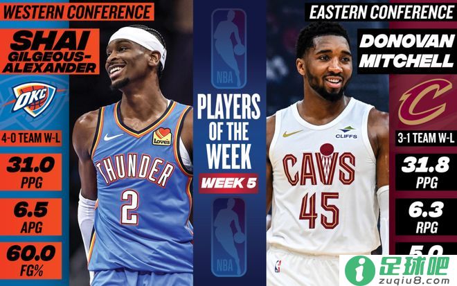 NBA官宣周最佳:亚历山大米切尔场均30+中选哈登东契奇等获提名