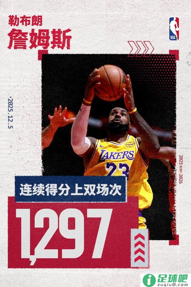 詹姆斯延续1297场得分上双纪录终结上次距今已隔6908天相关内容