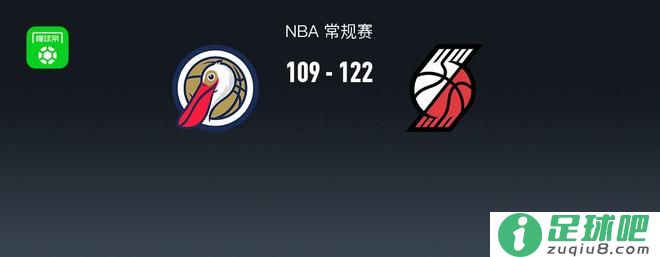 第四节鹈鹕普尔拿下12分,开拓者卡莱布-乐福拿下12分,最终鹈鹕109-122不敌开拓者