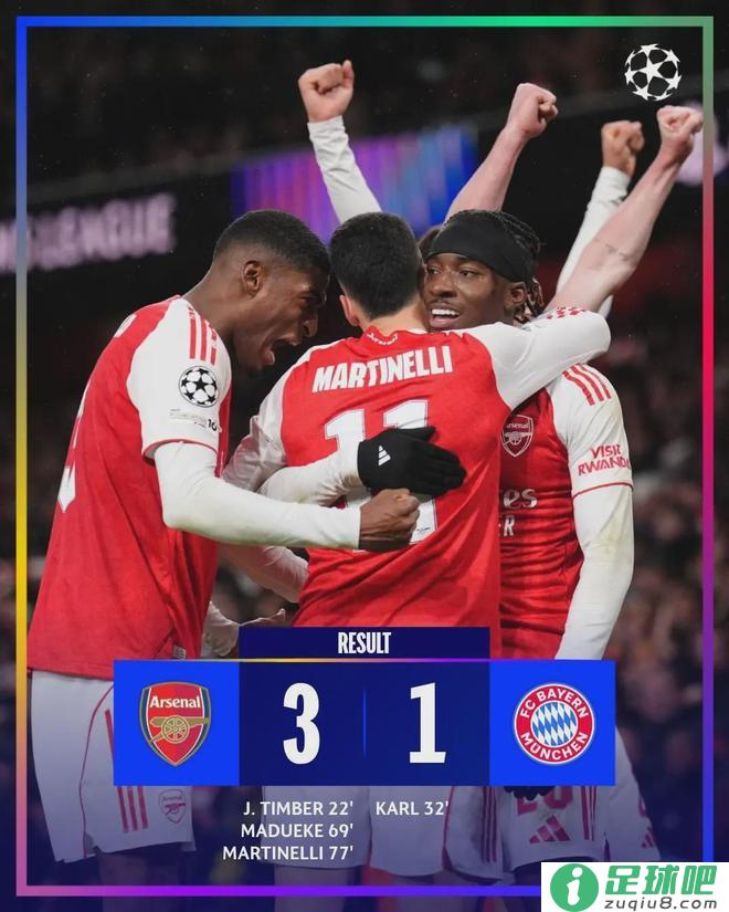 当伦敦的夜色掩盖酋长球场,记分牌上跳动的数字最终定格在3-1——这是阿森纳在欧冠联赛阶段第5轮送给拜仁慕尼黑的比分。22分钟廷伯的头槌破门,32分钟17岁小将卡...发表于:11月27日