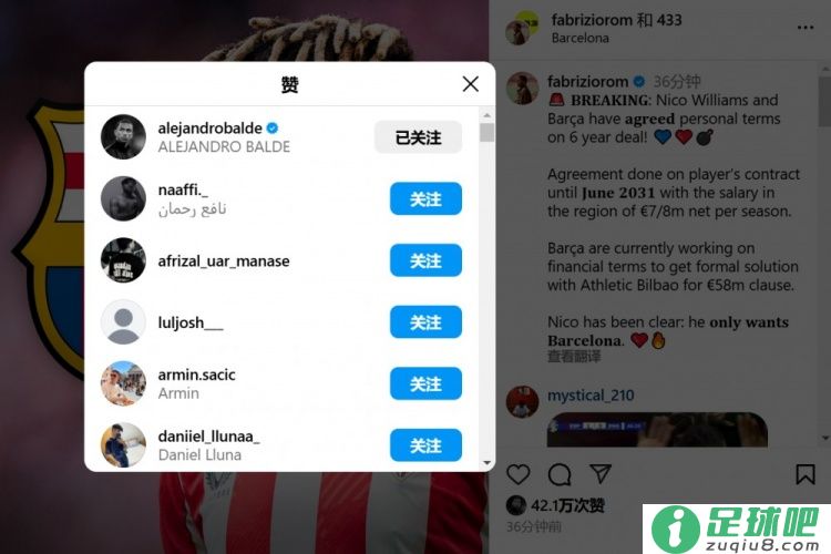 等候成为队友罗马诺报道尼科与巴萨谈妥团体条款,巴尔德点赞相关内容