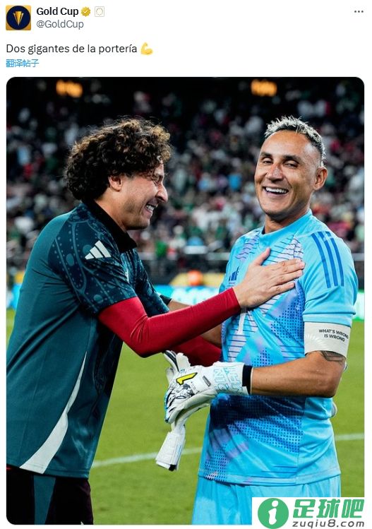 在明天早上停止的金杯赛小组赛中,墨西哥0-0战平哥斯达黎加。赛后金杯赛官方晒出了两位传奇门将38岁纳瓦斯和39岁奥乔亚的合影。