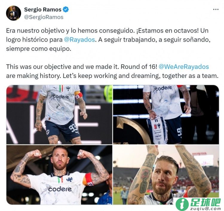 拉莫斯社媒:我们达成晋级16强的目的,蒙特雷正在发明历史