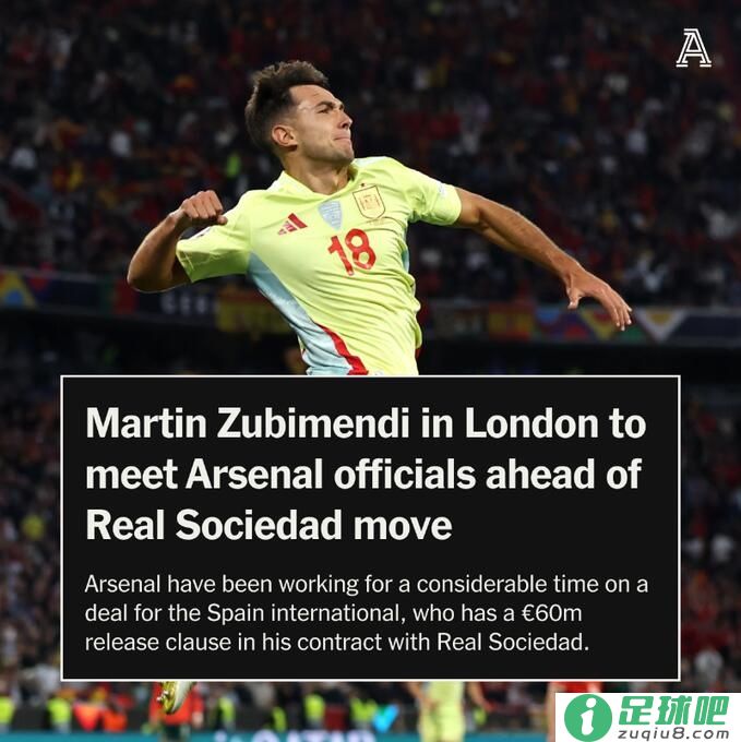 TA的报道指出,祖比门迪正在伦敦与阿森纳官员见面,并完成他从皇家社会转会至阿森纳的手续。阿森纳为签下祖比门迪曾经努力了很长时间,他与皇家社会的合同中包括6000万欧元(5170万英镑)的解约金条款。