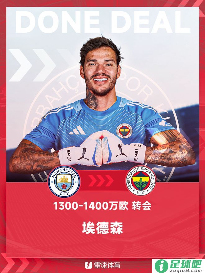 官方:曼城门将埃德森加盟费内巴切,转会费约13001400万欧