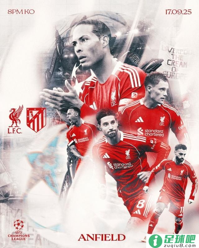 利物浦晒欧冠战马竞海报:范迪克、萨拉赫+新援维尔茨等多人出镜