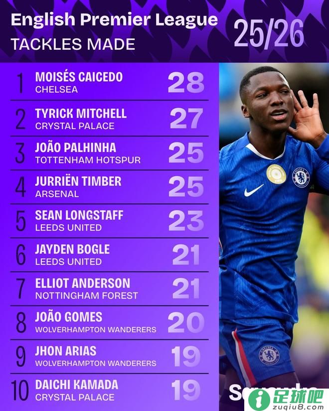 本赛季英超抢断榜前10:凯塞多第1,帕利尼亚、廷贝尔并列第3相关内容