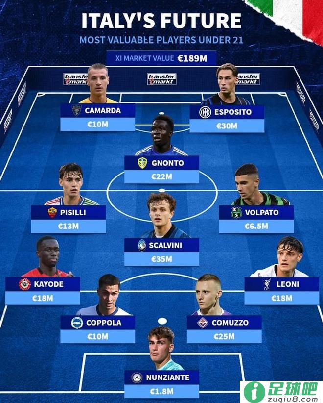 德转列意大利最贵U21阵容:皮奥、卡马尔达、莱昂尼在列