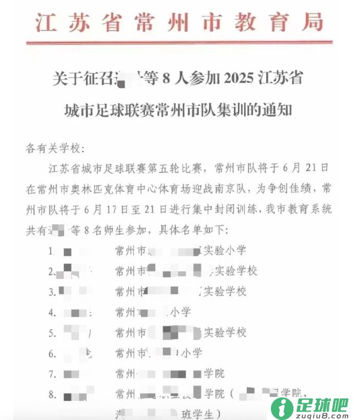 近日,一份常州市教育局下发的红头文件在网络引发热议。文件显示,常州市将组队参与“2025江苏省城市足球联赛”第五轮竞赛,为迎战南京队,将于6月17日至21日组织封锁集训,拟征召8名来自常州各中小学、院校的体育教员和大先生参训。文件并载明征召对象详细学校、职务。