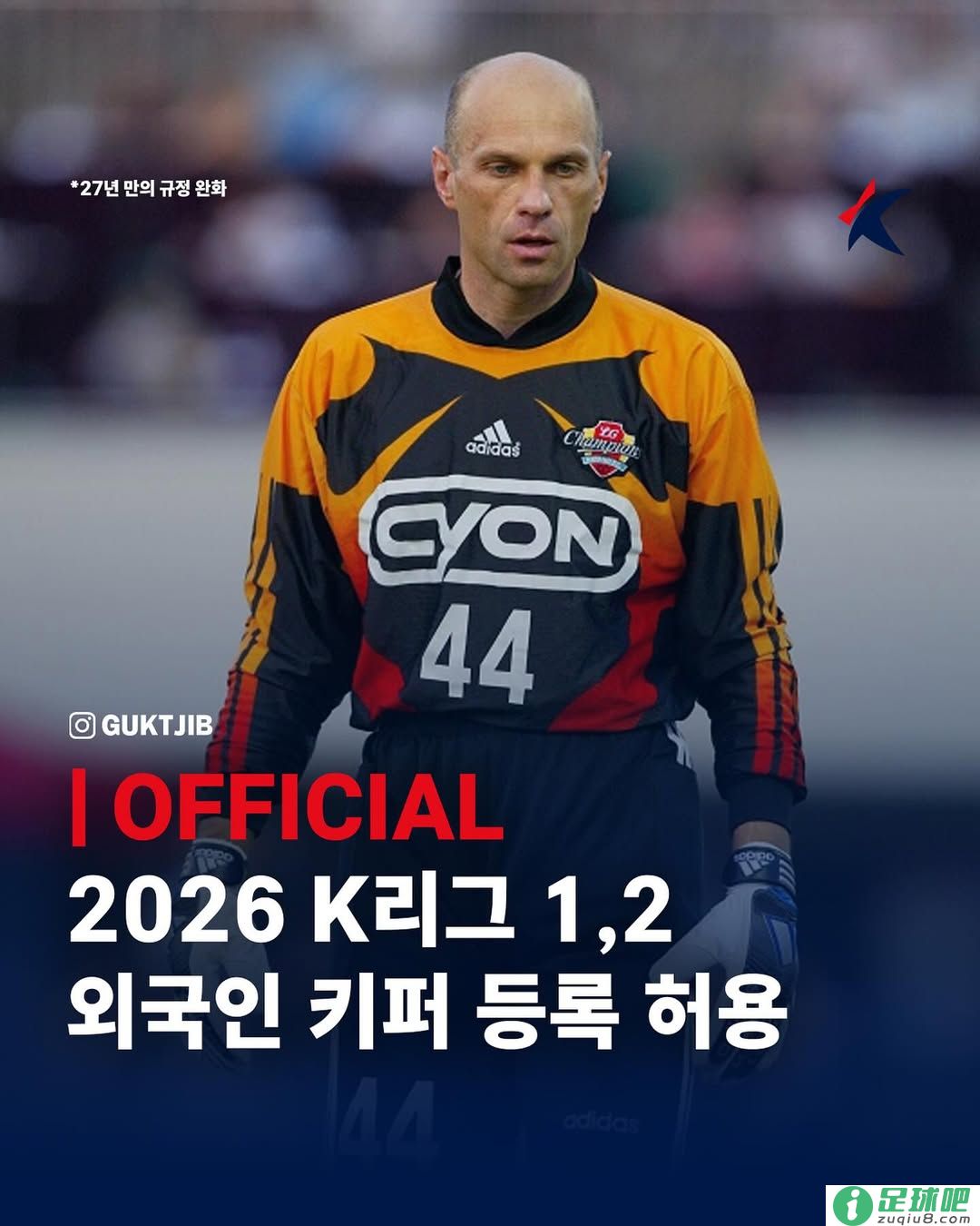 放开门将竞争!官方:2026年起韩国K联赛将允许引进外籍门将相关内容