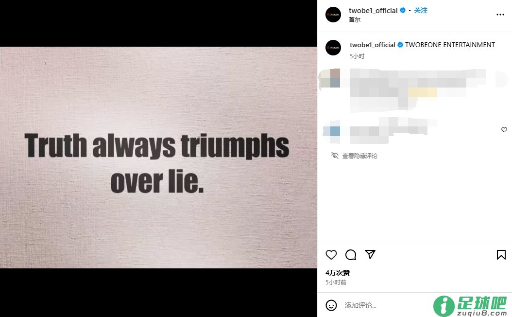 昔日崔康熙的经纪公司在社媒上停止了更新,发布一张图片,下面写着“真理永远会打败谎言”。