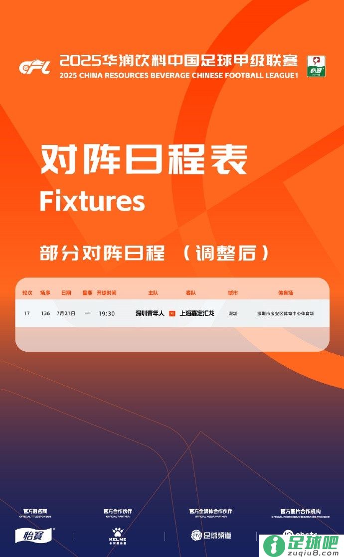 2025华润饮料中甲联赛第17轮第136场,深圳青年人与上海嘉定汇龙的竞赛原定于7月20日19:30在深圳市宝安区体育中心体育场停止。