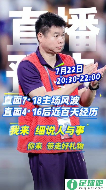 于根伟在团体社媒写道:直面718主场风云,直面416后近百天阅历,大家能够想知道很多,我来直播说说。有什么效果,也请评论区留言通知我,22日早晨,我集中回答。这场直播的时间为20:30-22:00。