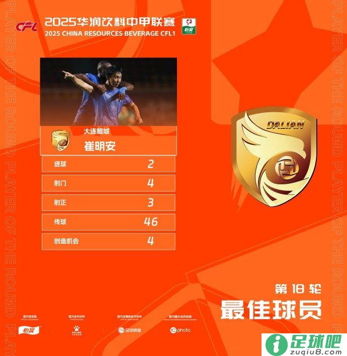 两分钟两球助大连鲲城完成逆转,崔明安中选中甲第18轮最佳球员